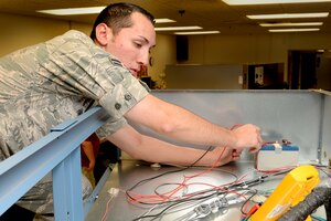 Aug. 27, 2014 Airmen conduct Explosive Ordnance Disposal training Airmen kneel in the middle of an open field to connect wires to a small item. Their movements have to be precise, because even though this object is small and seemingly harmless, it is actually an explosive device. Airmen from the 375th Civil Engineer Squadron Explosive Ordnance Disposal