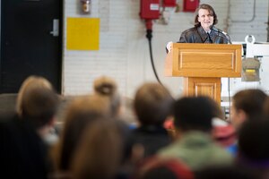 April 13, 2018 Award-winning author speaks about breastfeeding in the military SCOTT AIR FORCE BASE, Ill. — Robyn Roche-Paull, founder of the “Breastfeeding in Combat Boots” nonprofit organization, partnered with Scott’s Mom2Mom organization to speak about breastfeeding in the military April 6. Roche-Paull has received numerous awards for her book, Breastfeeding in Combat