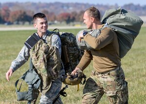 Dec. 1, 2017 SERE performs static-line jump during incentive flight Members of the 375th Operations Support Squadron talk as they gather gear following a static line jump from a C-130 Hercules as part of an incentive flight for excelling members of Scott AFB, Nov. 16, 2017. The first jump on Scott's new air drop occurred on March 1st, 2017. Since then, Scott has