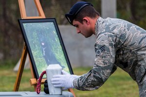 Oct. 19, 2017 Honoring the life, service of MWD Satin Security Forces personnel and those who knew Military Working Dog Satin N591 held a memorial service to honor his service and his life, Oct. 12, 2017, at Scott Air Force Base, Ill. He fortunately was able to enjoy some retirement life thanks to an adoptive family before losing his battle with
