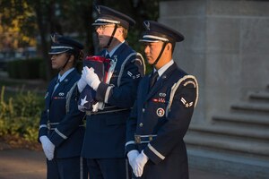 Sept. 12, 2017 Scott holds 9/11 Reveille on Patriot Day Airman from Scott Air Force Base's honor guard prepare to raise the flag for Revielle, Sept. 11, 2017. Each year, military installations across the globe hold an observerance on Patriot Day to honor those who lost their lives in the 9/11 terrorist attacks. (U.S. Air Force photo by Airman 1st Class