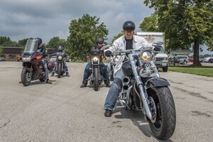 Aug. 16, 2017 375th Safety Office hosts motorcycle safety event SCOTT AIR FORCE BASE, Ill. -- The 375th Air Mobility Wing Safety Office hosted a Motorcycle Safety Day event on Aug. 11. Those who attended fulfilled the mandatory five year requirement.The event began in Bldg. 859’s auditorium where riders had a general safety brief about dynamics of stopping,