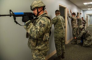 Aug. 23, 2017 Security forces, medics conduct active shooter exercise The 375th Security Forces Squadron worked with the 375th Medical Group for an active shooter exercise Aug. 16 at Scott Air Force Base. The exercise helped security forces personnel identify any short falls or limiting factors in response capabilities and gave them a chance to test and train new