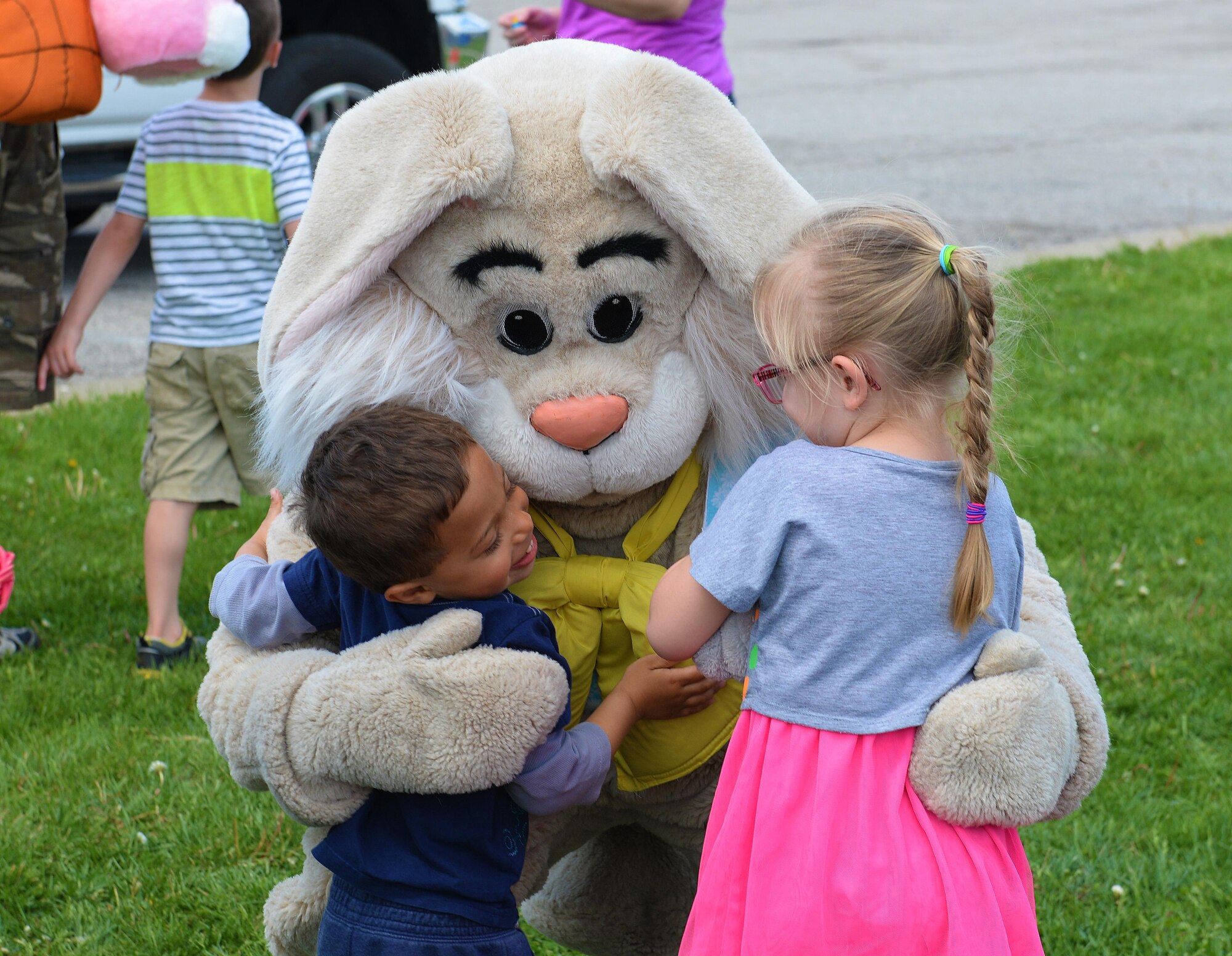 375th FSS hosts Egg Hunt Egg-Stravaganza Published April 19, 2017 By Senior Airman Erica Fowler 375 Air Mobility Wing Public Affairs SCOTT AIR FORCE BASE, Ill. -- Senior Airman Kyle Sowards, 375th Security Forces Squadron patrolman, poses with children attending the Egg Hunt Egg-Stravaganza, Scott Air Force Base, Ill., April 15, 2017. 375th SFS Airmen talked to crowds of families about their jobs and let children see what it was like to sit inside their various vehicles. (U.S. Air Force photo by Senior Airman Erica Fowler)