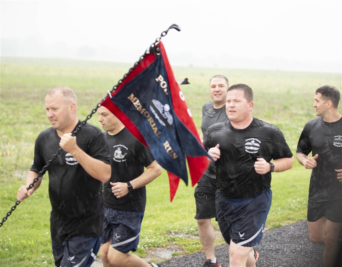 Scott AFB hosts annual ‘Port Dawg’ Memorial Run Published June 7, 2018 By Tech. Sgt. Joshua Spierer 618th Air Operations Center The Aerial Port Community, also known as “Port Dawgs,” recently came together at Scott Air Force Base to pay tribute to the five brothers and sisters they lost this past year. Approximately 20 service members, both active duty and retired, from Air Mobility Command, the 618th Air Operations Center and the 375th Logistics Readiness Squadron completed the annual “Port Dawg Memorial Run” at the end of National Transportation Week. This same event was held at locations all over the globe from the larger Aerial Ports such as Dover AFB, Delaware, and Travis AFB, California, to enroute locations like Incirlik Air Base, Turkey, and Yokota AB, Japan. Each member who participated in the run wore a T-shirt with the names of those we lost on the back. Even though they accomplish the memorial run locally, all the proceeds from the shirt purchases are pooled together and then go directly to the Fisher House Foundation in honor of the fallen Port Dawgs. Last year the Port Dawg Community raised $5,790. This year they raised more $12,425, over double of last year’s amount. Furthermore, the Fisher House Foundation has made a huge impact since its inception in 1990. As a four star charity organization Fisher House Foundation is best known for network of comfort homes where military and veterans’ families can stay at no cost while a loved one is receiving treatment. Some of their major programs include, but are not limited to: “Home Away From Home” for military families, Hero Programs, Newman’s Own Award, Scholarships and many more. Col. Michael Day, AMC air transportation division chief, and Chief Master Sgt. Joseph Nuebauer, AMC air transportation functional, provided opening remarks highlighting the significance of the event. Following the opening remarks was the ceremonial hanging of the MB-1 Devices signifying each fallen Port Dawg. Members of both the active duty force along with the retired Port Dawg community participated in this event.