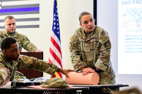 Scott AFB Strengthens Readiness Through Base Defense Training Published Sept. 26, 2025 By Airman 1st Class Devin Morgan 375th Air Mobility Wing Public Affairs SCOTT AIR FORCE BASE, Ill. -- Airmen from across the base participated in the Airman Base Defense Course, Sept. 9–12, a program designed to prepare Airmen from other career fields to support installation defense as augmentees. By training Airmen from multiple specialties, the ABDC strengthens Scott AFB’s overall readiness while fostering connections across ranks and career fields. For many students, the experience is more than just an additional duty. It is an opportunity to directly defend their base and fellow wingmen. U.S. Air Force Senior Airman Johnny Jevon-Clay, 437th Supply Chain Operations Squadron records maintenance journeyman, is issued gear during the Airman Base Defense Course at Scott Air Force Base, Illinois, Sept. 8, 2025. Airmen from multiple career fields participated in the ABDC to support base defense. (U.S. Air Force photo by Airman 1st Class Devin Morgan) Photo Details / Download Hi-Res “This training helps build numbers that can be used to ensure overall base defense,” said Tech. Sgt. Michael Waites, 375th Security Forces Squadron ABDC instructor. “In times when our augmentees aren’t working with us, they have the skill sets needed to help detect, deter and report suspicious individuals and situations.” U.S. Air Force Senior Airman Vanessa Baptista, 375th Security Forces Squadron defender and instructor, teaches Tactical Combat Casualty Care during the Airman Base Defense Course at Scott Air Force Base, Illinois, Sept. 8, 2025. Airmen participate in the weeklong ABDC to provide additional support to base defenders. (U.S. Air Force photo by Airman 1st Class Devin Morgan) Photo Details / Download Hi-Res The week-long course equips participants with the skills needed to perform base defense as an additional duty, enabling them to support security forces during increased mission demands or deployments. Airmen participated in hand-to-hand combat training, known as the Red Man, Virtual Reality simulations to practice de-escalating and most Airmen even elected to be tased, to better understand the force they could have to use. U.S. Air Force Airman 1st Class Omar Facey, 375th Communications Squadron client systems technician, participates in Red Man training during the Airman Base Defense Course at Scott Air Force Base, Illinois, Sept. 9, 2025. The training is used to teach Airmen hand-to-hand combat skills and provide an opportunity to apply them in practice. (U.S. Air Force photo by Airman 1st Class Devin Morgan) Photo Details / Download Hi-Res Through classroom lessons, weapons training and hands-on exercises, Airmen learned the fundamentals of securing an installation and responding to potential threats. U.S. Air Force Staff Sgt. Matthew Meggett, 54th Airlift Squadron flight attendant, is supported by Staff Sgt. Cameron Patton, 375th Security Forces Squadron defender, and Tech. Sgt. Michael Waites, 375th Security Forces Squadron defender and training instructor, during the Airman Base Defense Course at Scott Air Force Base, Illinois, Sept. 9, 2025. Airmen undergo a Taser exposure during training to understand the level of force they may use. (U.S. Air Force photo by Airman 1st Class Devin Morgan) Photo Details / Download Hi-Res Senior Airman Vanessa Baptista, a 375th SFS ABDC instructor, added, “Whether they are an Airman who typically sits at a quiet desk all day or an officer from the academy, this program pushes them to be able to do more than they thought they were capable of." Airmen from a wide range of career fields participated, including maintenance and logistics, operations, and pilots. For many, the course offered their first exposure to security forces duties. One student said the course provided a unique perspective. “Having come from a flying squadron where the enlisted are few and far between, watching new Airmen be taken under the wing of strong and experienced NCOs highlighted the extent to which professionalism is honed and passed down from mentor to mentee,” said 1st Lt. Jack Calkins, 458th Airlift Squadron C-21A Learjet pilot.