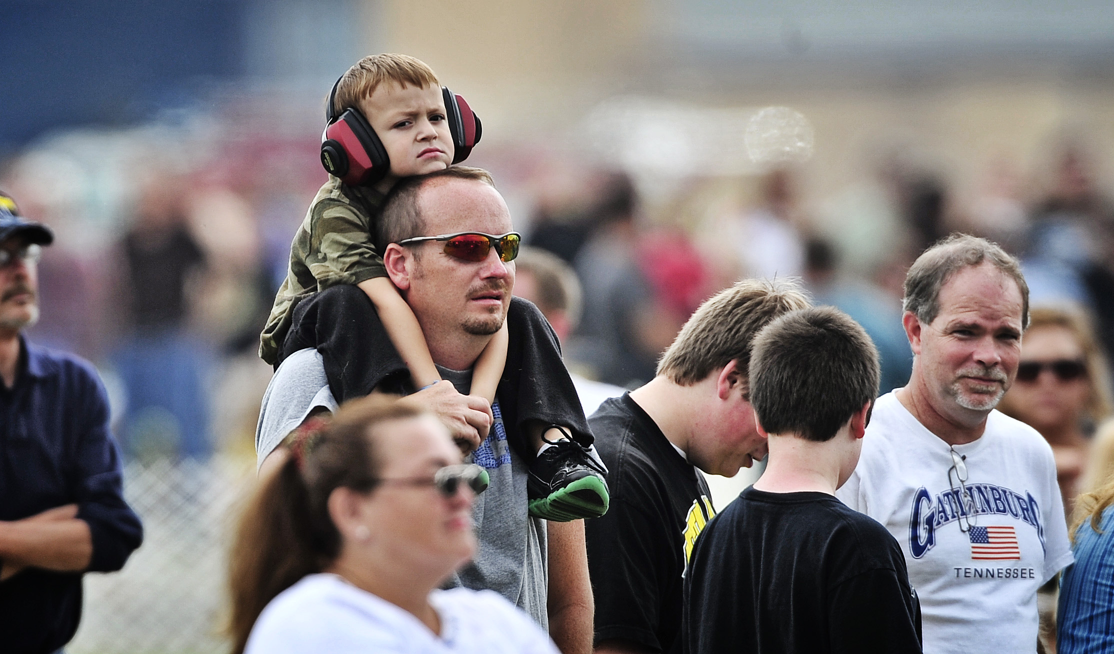A father and son wait patiently for the U.S. Air Force Thunderbirds to begin their show during 2012 Airpower Over the Midwest airshow Sept. 16 at Scott Air Force Base, Ill. The airshow featured numerous acts including the USSOCOM para-commandos, U.S. Air Force Thunderbirds as well as hands on static airplane displays.(U.S. Air Force photo/ Staff Sgt. Ryan Crane)