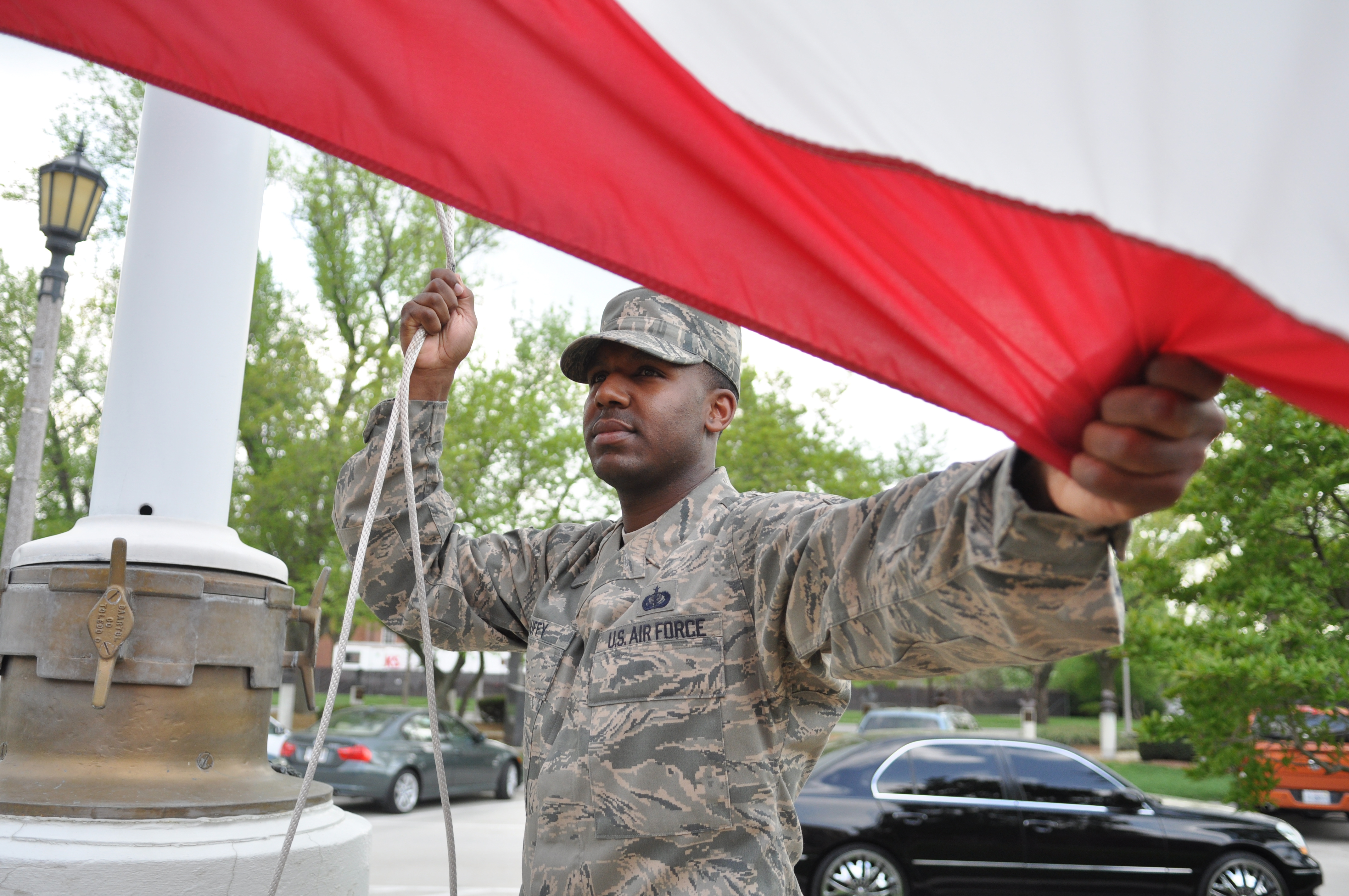 Staff Sgt. Rashawn Duffy, 375th Air Mobility Wing Protocol. “I Enable Combat Power by providing distinguished visitors positive and lasting impressions through expert protocol knowledge, skill and showcase service, further enhancing Air Mobility Command’s Showcase Wing.” (U.S. Air Force photo/Senior Airman Amber Kelly-Herard)
