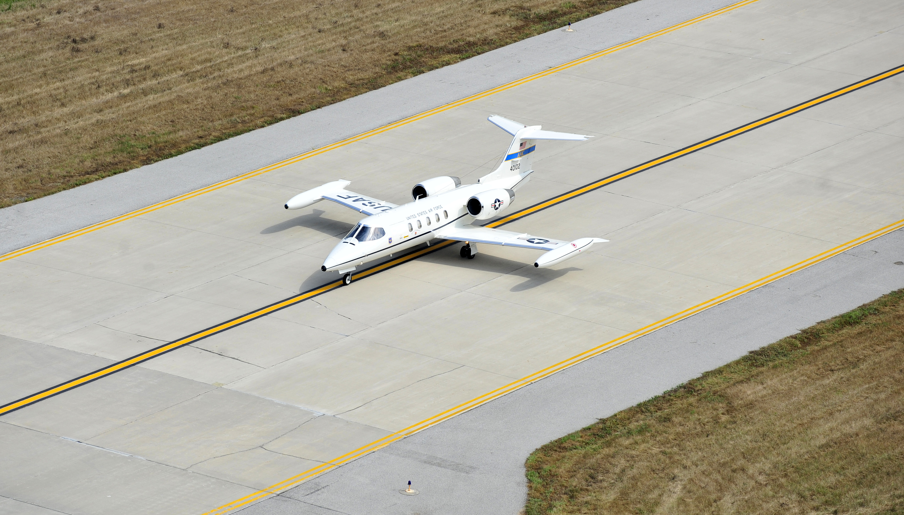 A C-21A from the 458th Airlift squadron taxis down the runway Aug. 3 at Scott. The C-21 is capable of providing aerial refueling and airlift support to all branches of the military to enhance the mission. (U.S. Air Force photo/Staff Sgt. Stephenie Wade)
