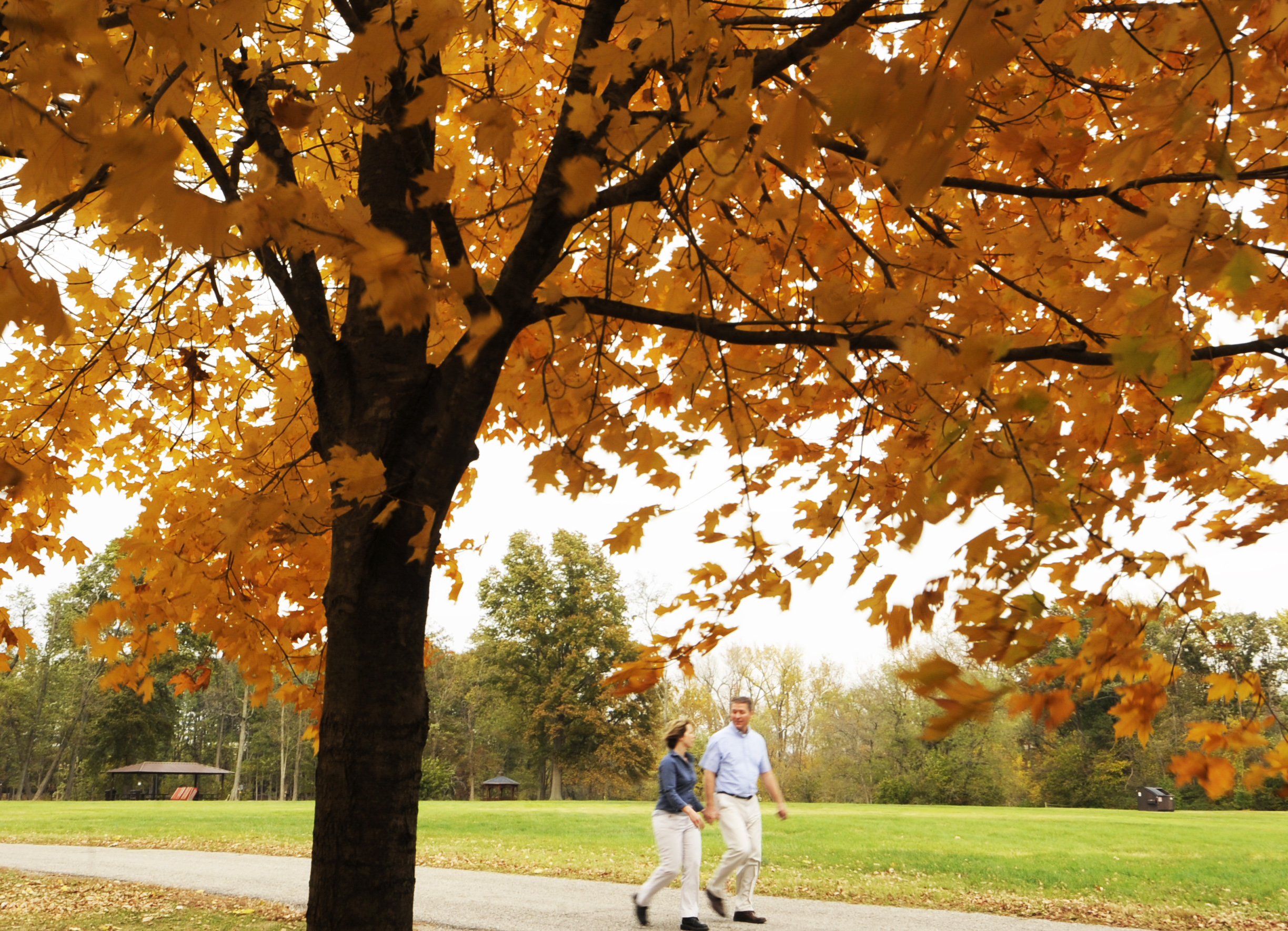 SCOTT AIR FORCE BASE, Ill. – A couple enjoys a stroll through the park around Scott Lake as the base reaches the peak of the Fall season Oct. 25. There is a short time frame where Scott is transformed into a picturesque fall landscape and people can be found outside enjoying the colors and weather while they last. (U.S. Air Force photo/ Staff. Sgt. Ryan Crane)