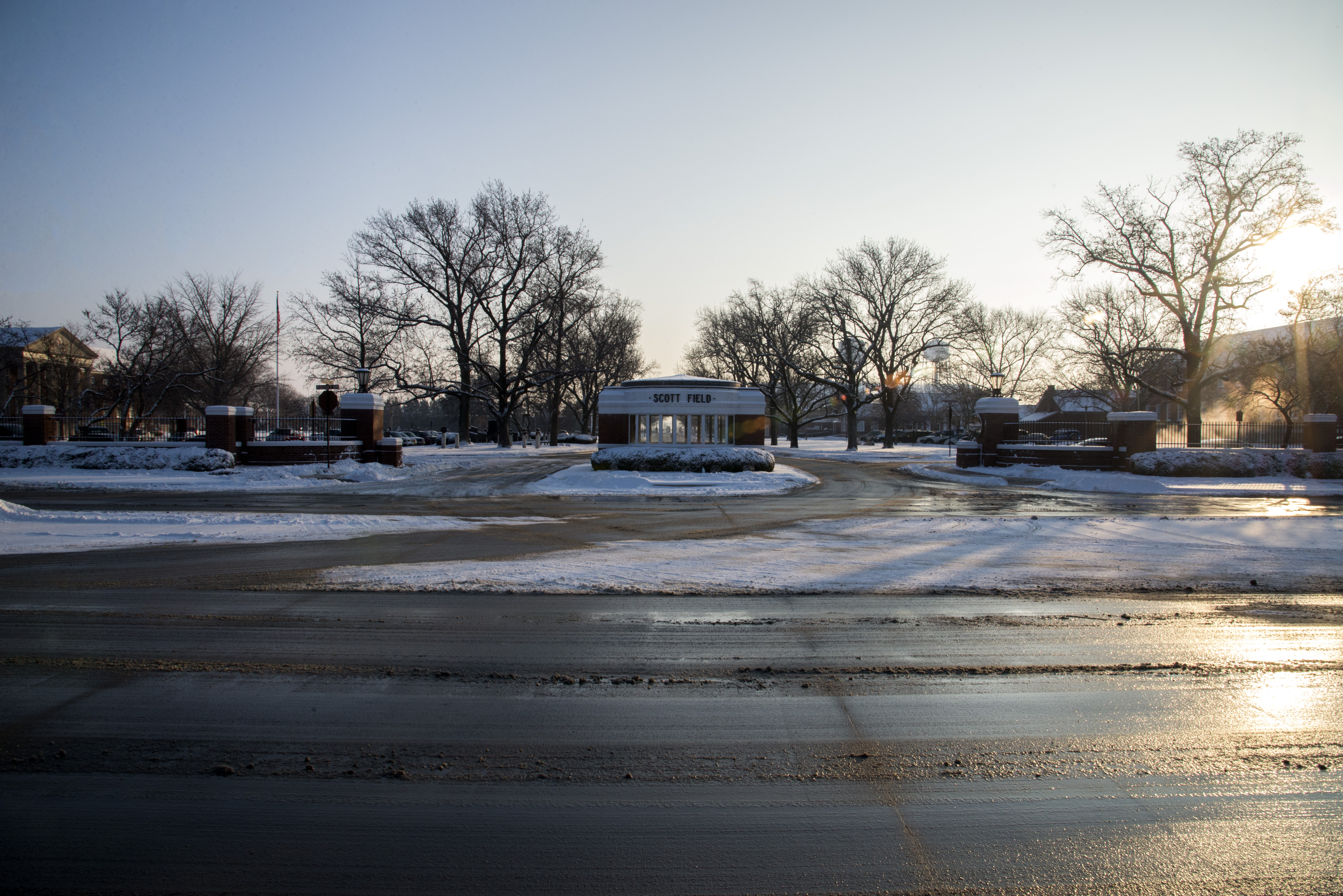 Scott Air Force Base received three inches of snow during the first snowfall of the winter season. CE worked Tuesday night into Wednesday morning to clear 3 inches of snow from base streets and parking lots during Scott’s first snowfall of the winter season. (U.S. Air Force by Airman Gwendalyn Smith)