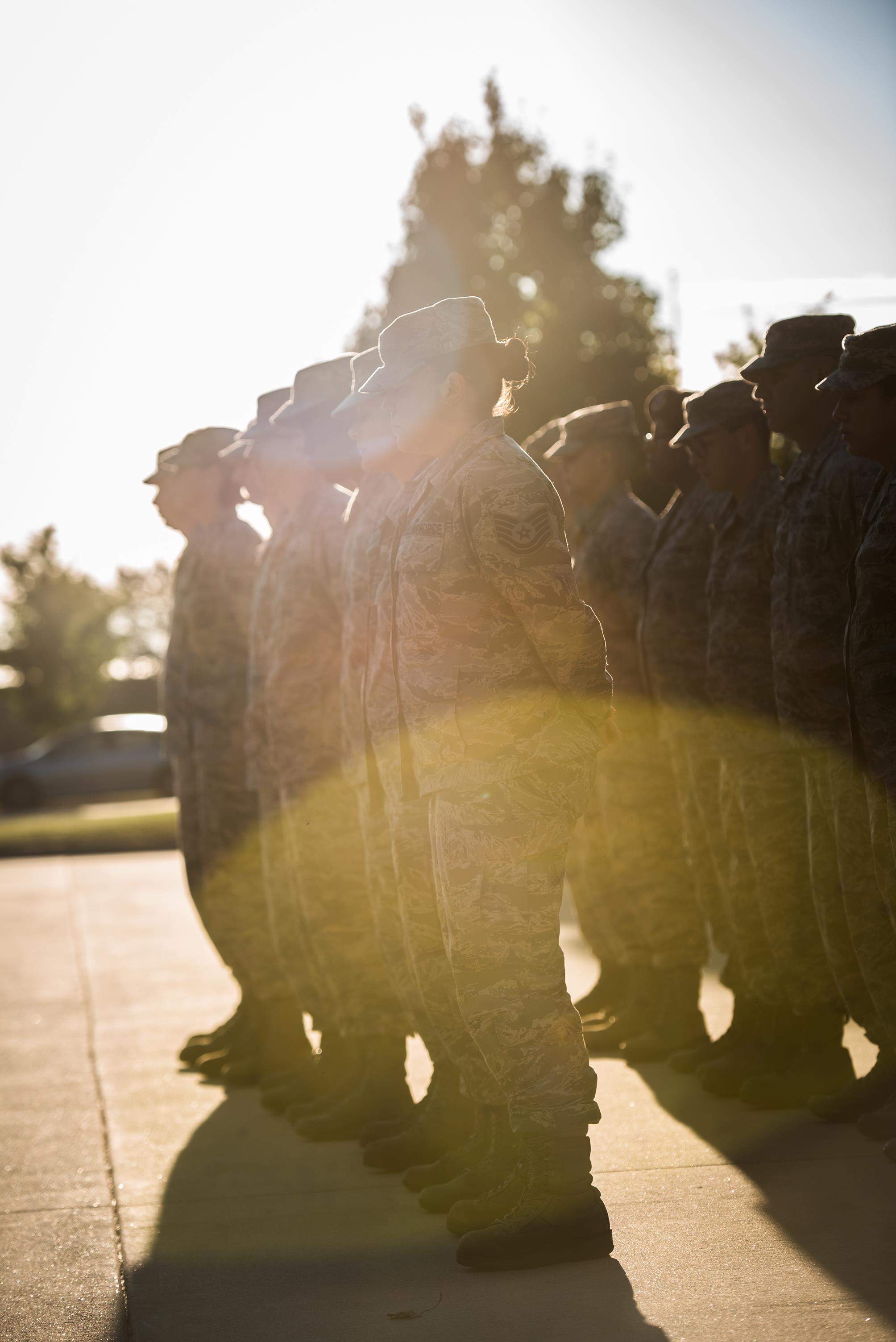 The 9/11 Reveille begins the work day, as service members remembered those affected by the 2001 terror attacks, Sept. 11, 2017, Scott Air Force Base, Ill. Scott remembered those affected by the terrorist attacks on Sept. 11 through a 9/11 reveille, a Belleville Memorial dedication, and a presentation by Chuck Rosenberg, former U.S. attorney of the Eastern District of Virginia. (U.S. Air Force photo by Cristopher Parr)